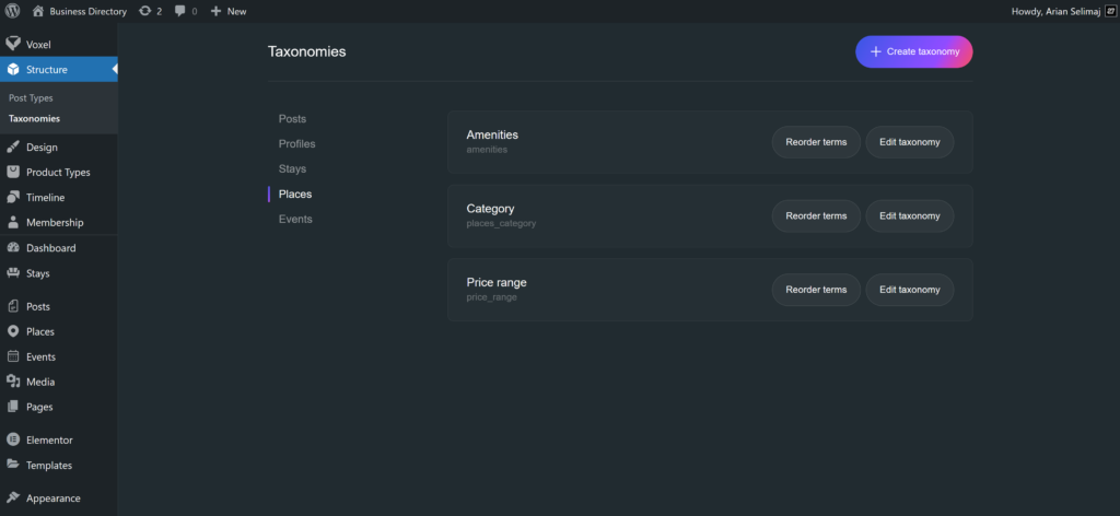 Voxel lets you create additional taxonomies, which we refer as Custom Taxonomies