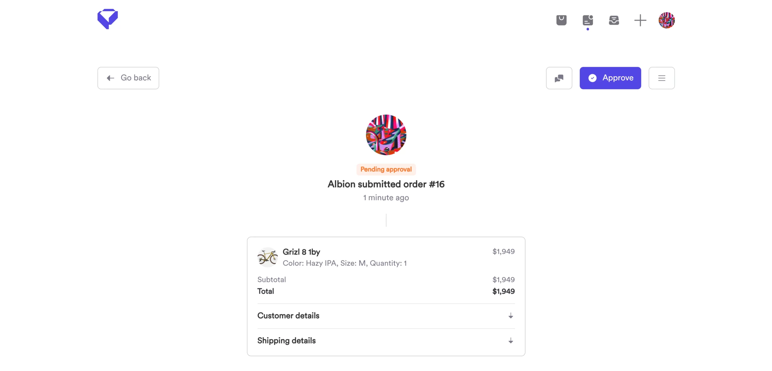 After approval, the order state is changed to Processing