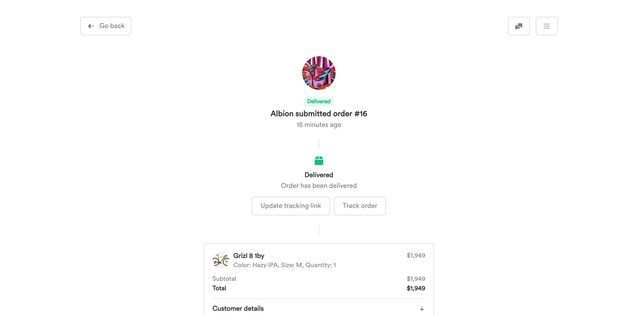 Once order is shipped, seller can share tracking link with customer