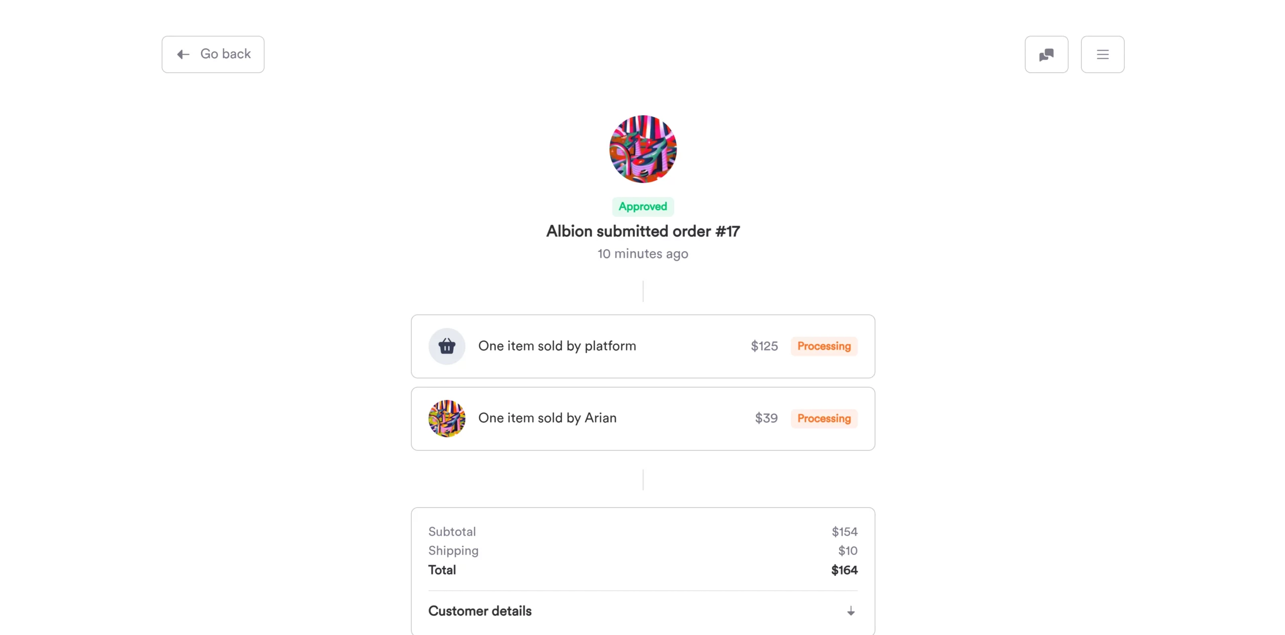 - Sub orders where products by each seller are contained