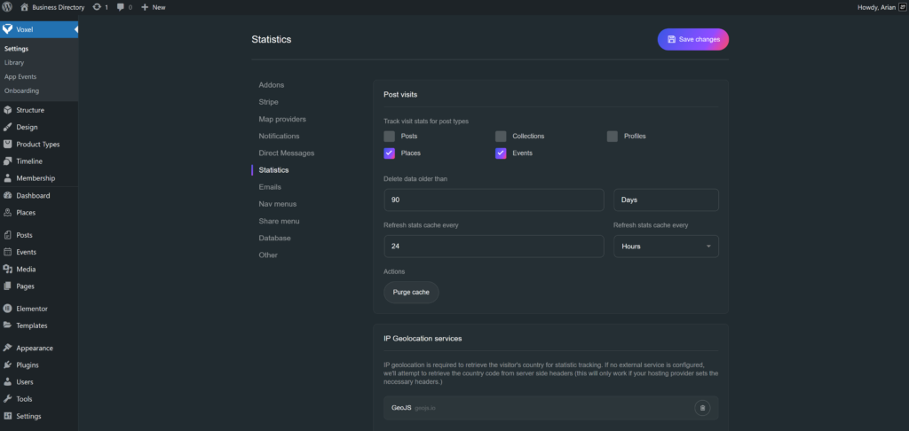 Traffic stats can be enabled in WP Admin ➝ Voxel ➝ Settings ➝ Statistics